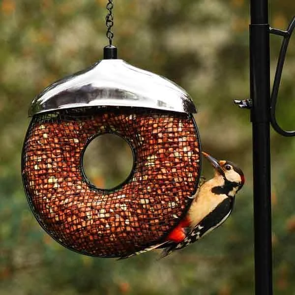 Deze prachtige pindavoederring heeft een duurzame metalen constructie. Het ronde ontwerp is niet alleen zeer mooi om naar te kijken, maar is ook praktisch daar er hieraan meerdere vogels tegelijkertijd kunnen eten. De pindaring werkt als een ware vogelmagneet en vele vogels komen zich te goed doen aan het voer.