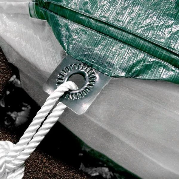 Aan de uiteinden van de tunnel zijn er scheurvrije ogen voorzien met touw om de tunnel vast te zetten. Ook aan de zijkant zijn deze ogen bevestigd. Zo kan je de folietunnel met de meegeleverde pinnen in de grond verankeren. De tunnel en zijn bogen vouwen uit en op zoals een accordeon waardoor het opbouwen of opbergen binnen enkele tellen kan gebeuren.