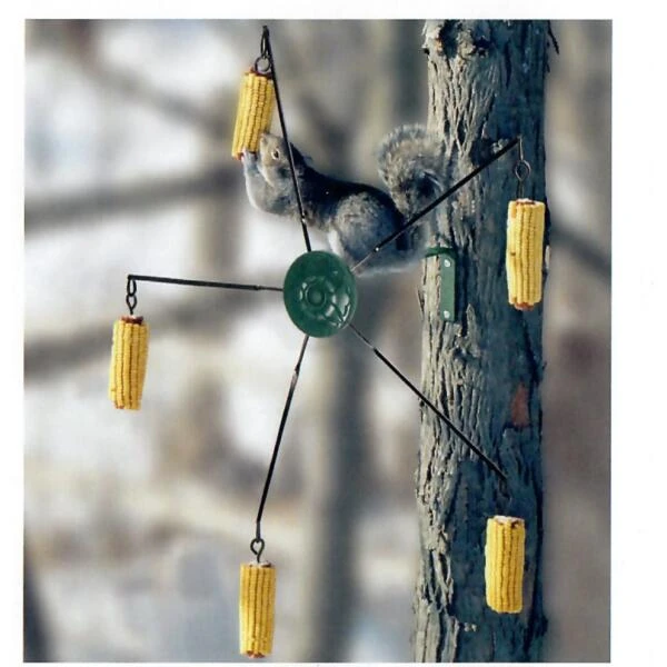 Een bijzonder en uniek voedersysteem voor de speelse eekhoorns en een plezier om naar te kijken voor de mensen.