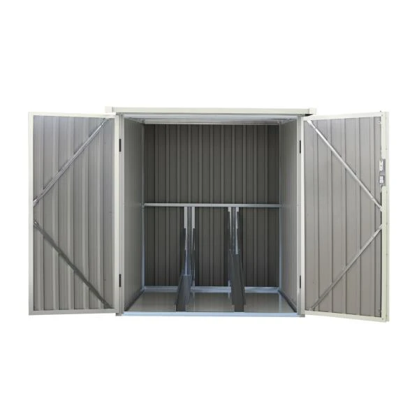 Deze Niki fietsenberging met lessenaarsdak is ideaal voor het opbergen van meerdere fietsen. Zo kan je ze veilig wegzetten, bechermd tegen regen en wind. De berging van Sinolily is volledig opgebouwd uit wanden van roestvrij staal, afgewerkt met een duurzame coating.